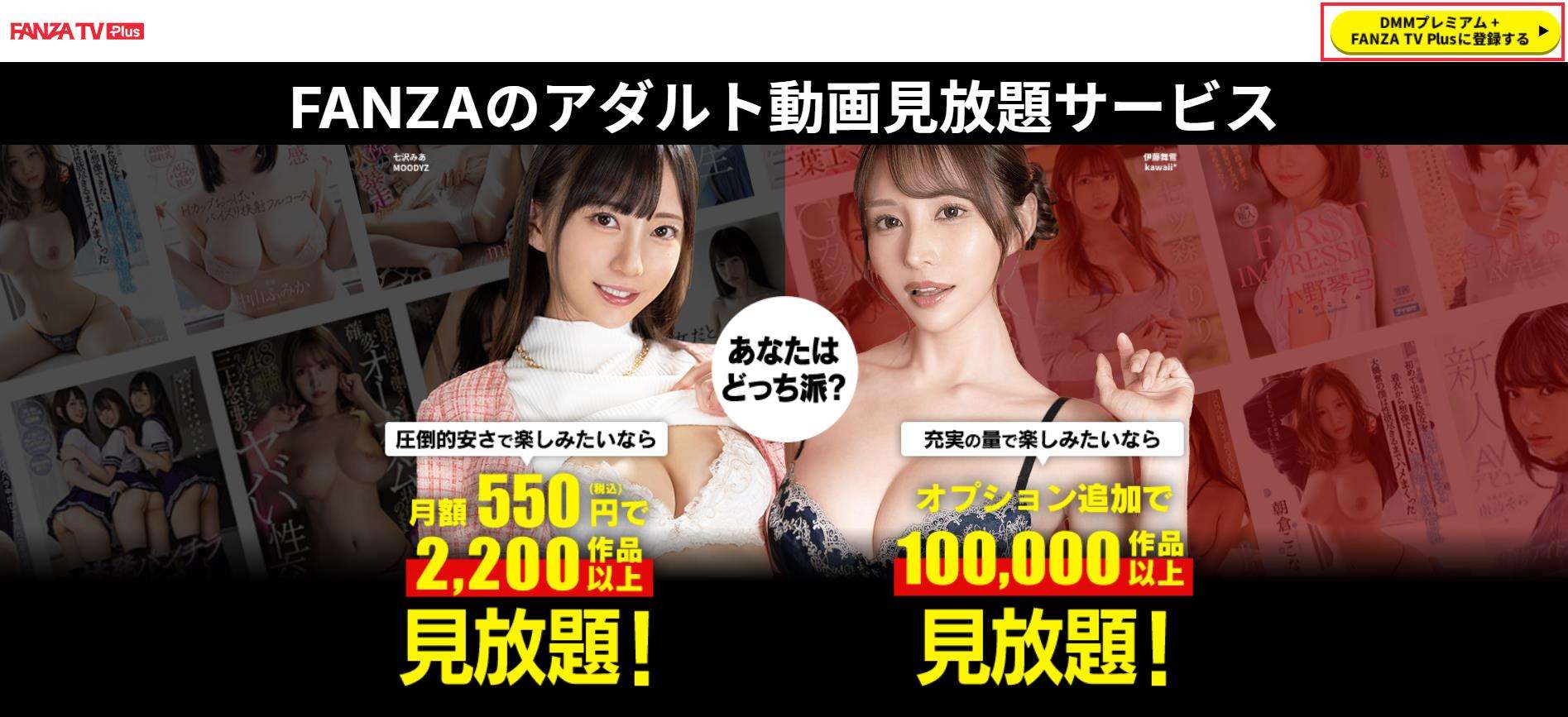 2画面右上の赤枠「DMMプレミアム+FANZA TV Piusに登録する」をクリック