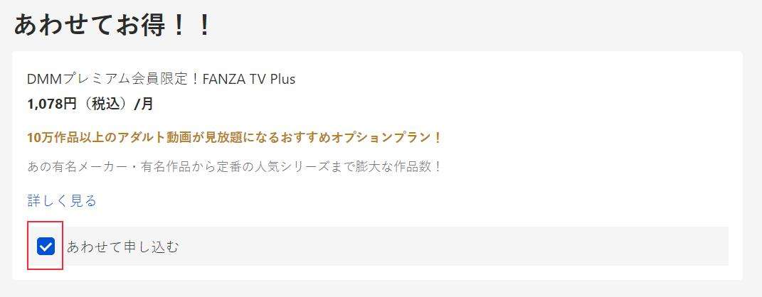 FANZA TV PiusはDMMプレミアムと合わせて申し込まなければ登録できません。